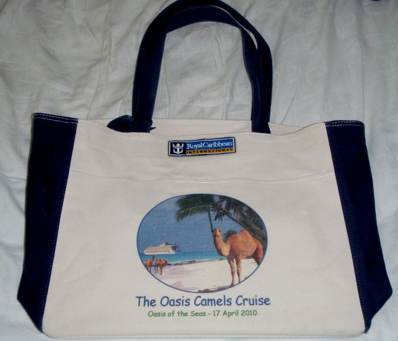 There is Oasis Camels merchandise available for purchase at Cafe Press. My tote bag is good solid canvas, the straps are sturdy, it’s well made: I’m very pleased! Instead of getting the one already available at Cafe Press, I did my own and added a picture of the Oasis on the back. (Yeah, it’s copyright violation, but I doubt RCCI will cut up stiff about it: It’s free advertising after all!)
