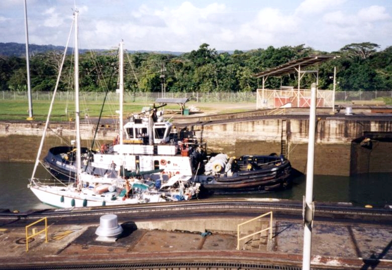 the inner of the two lock-sets on the Pacific side (both ships going toward the Pacific).