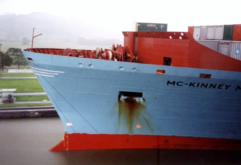 The Maersk liner leaving us behind as she steams out to Independence Bridge and the Pacific Ocean
