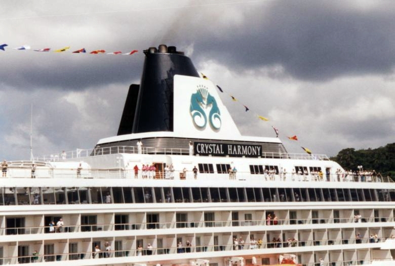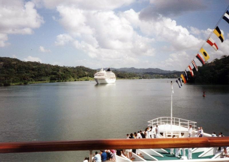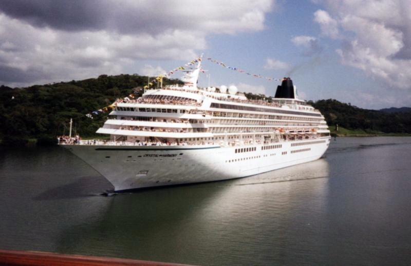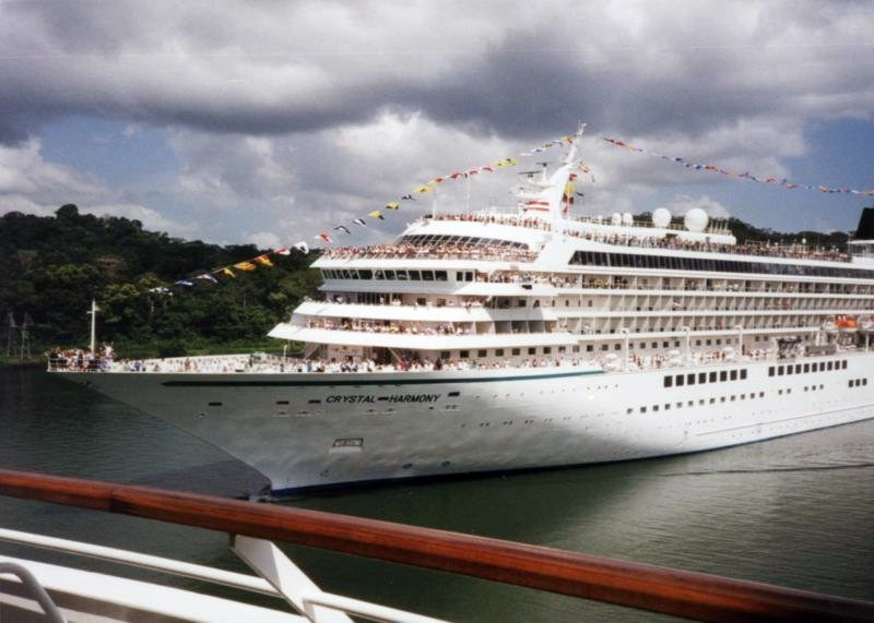 In an delightful feat of scheduling, the Crystal Harmony and the Crystal Symphony (the only two ships in the Crystal line at the time) actually crossed paths IN the Canal!