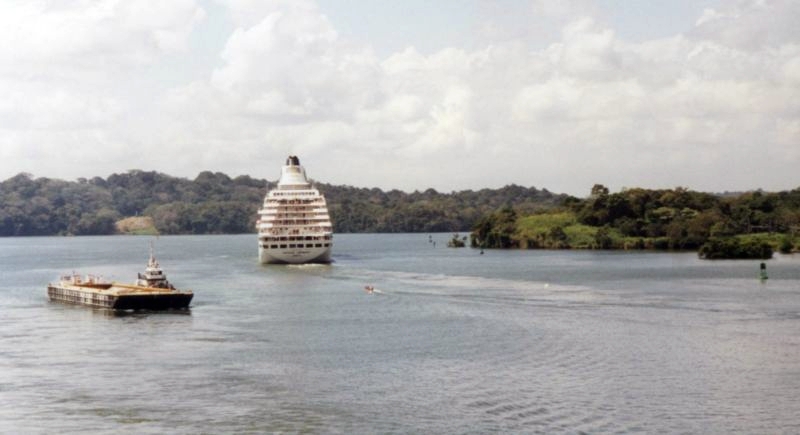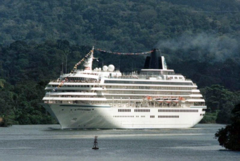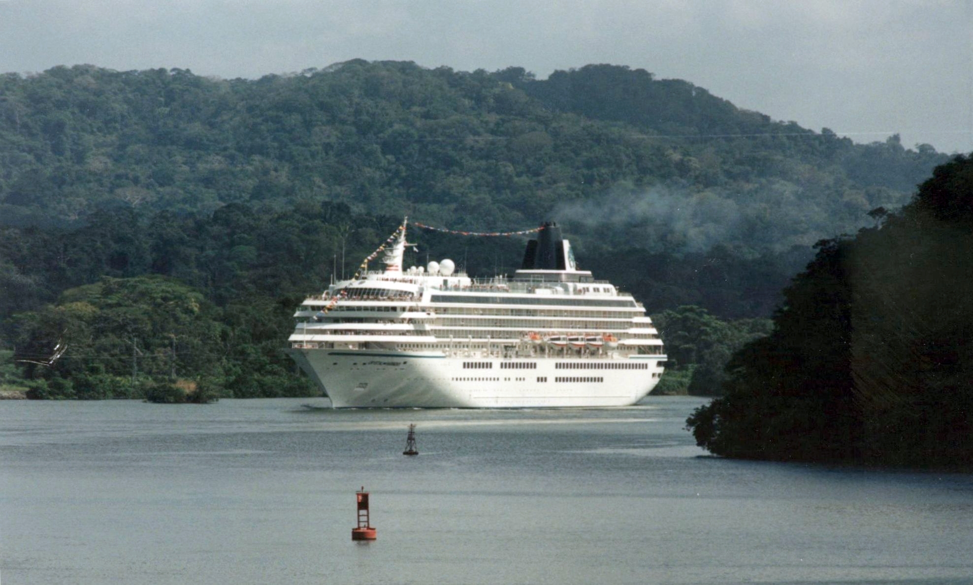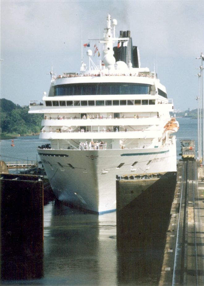 The Crystal Symphony entering the Gatun Locks on the Atlantic side of the Panama Canal.