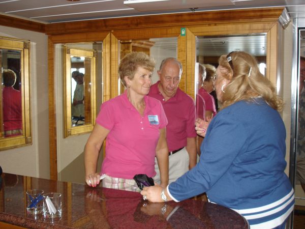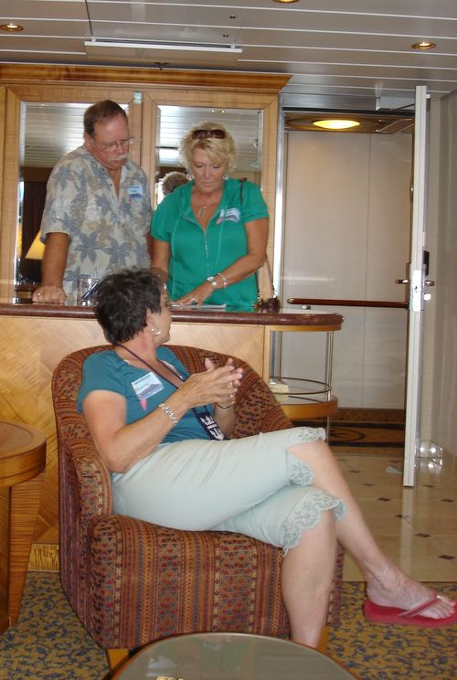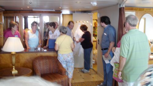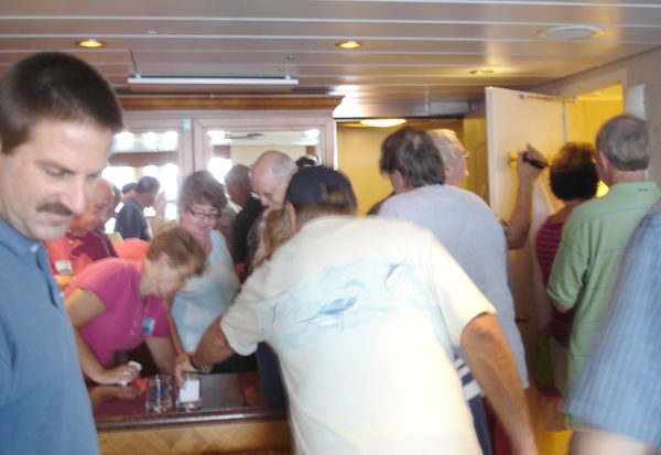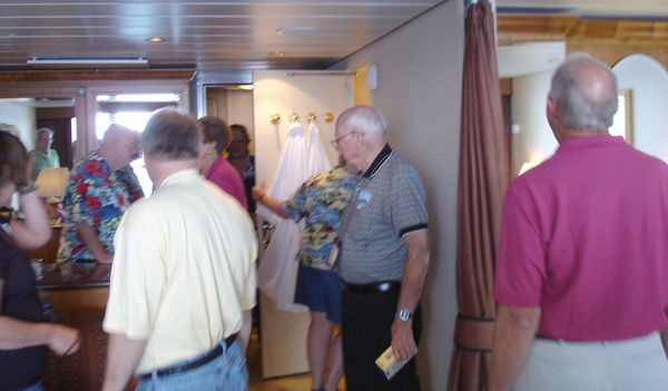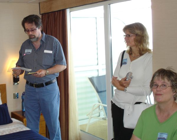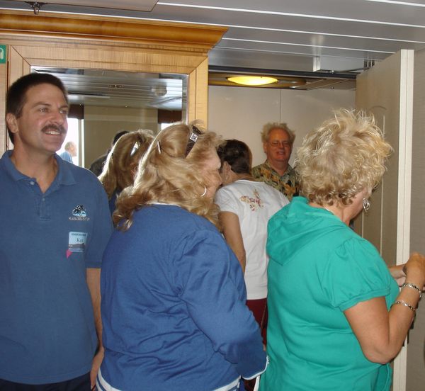 In each of the cabins we visited, a clue was provided to the contestants in Mike’s MilkShake Shakedown. The Crawl ended in our Grand Suite, with a recap of the nine clues, and a chance to think about where, in the Grand Suite, the $100-bill prize was hidden and how many people had signed up (several months before) to be “Milkshakers.” The catch was that whoever won the prize, was also committing him or herself to buying a milkshake up in the SeaView Cafe for however many Milkshakers had signed up.
