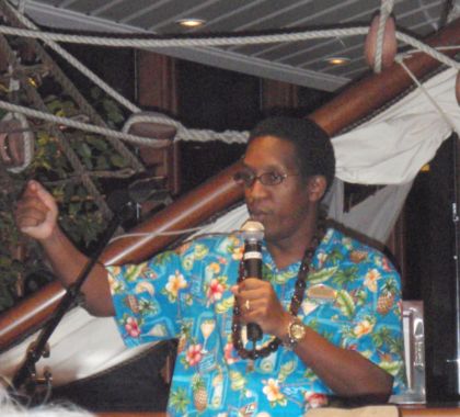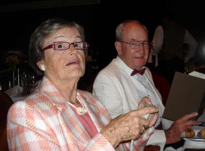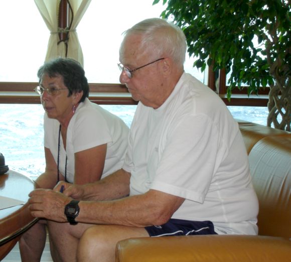 Carl and Marilyn and Lois and John, sailing out of Honolulu at night