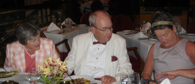 At a Concierge Lounge pre-dinner drinks and hors-d'ouvres get-together on a formal night