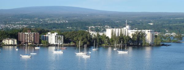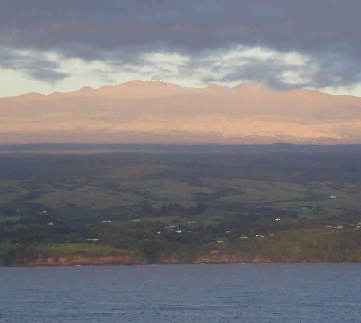 We sailed in at dawn past the observatories on top of Mauna Kea (4,200 meters/~13,780 feet high).