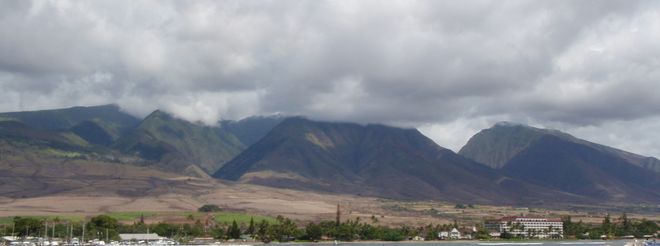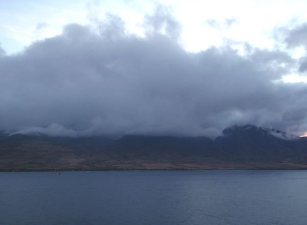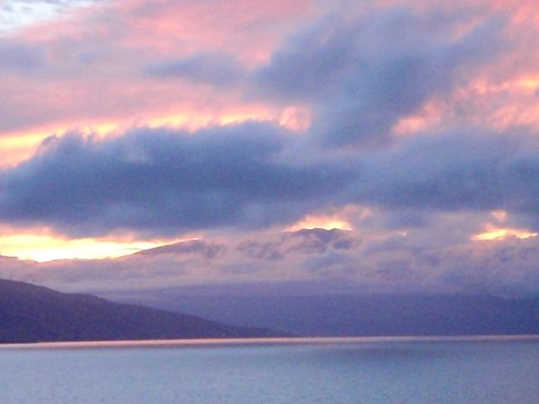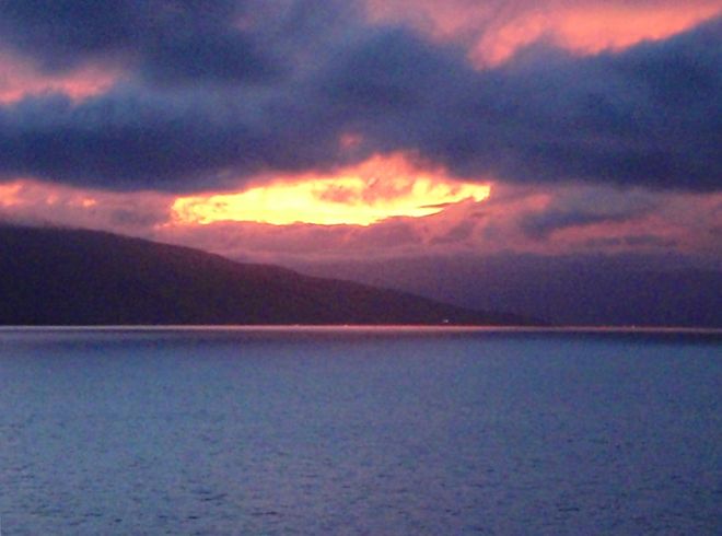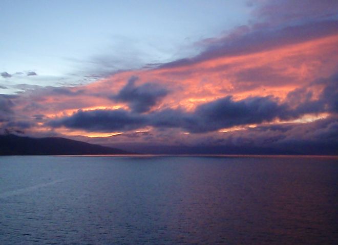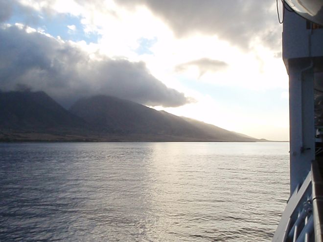 The tendering dock is just to the left of the little lighthouse in front of the red-roofed hotel.