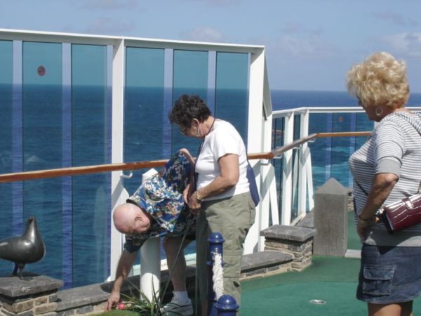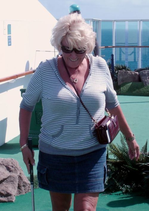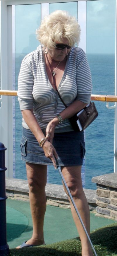 Kathy putts again.