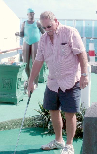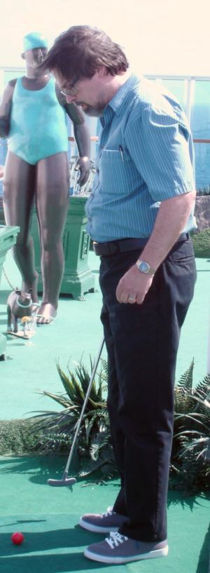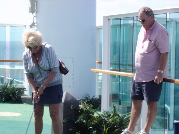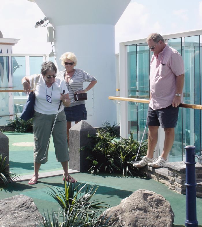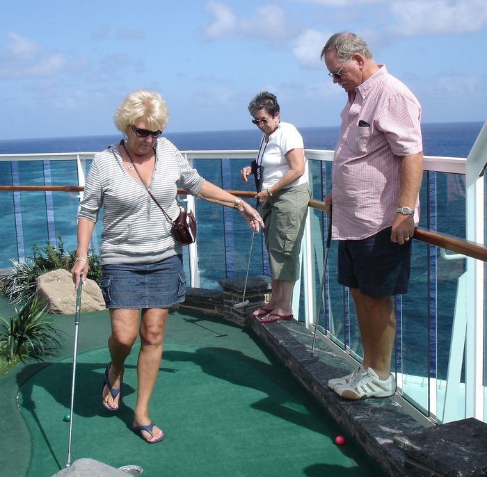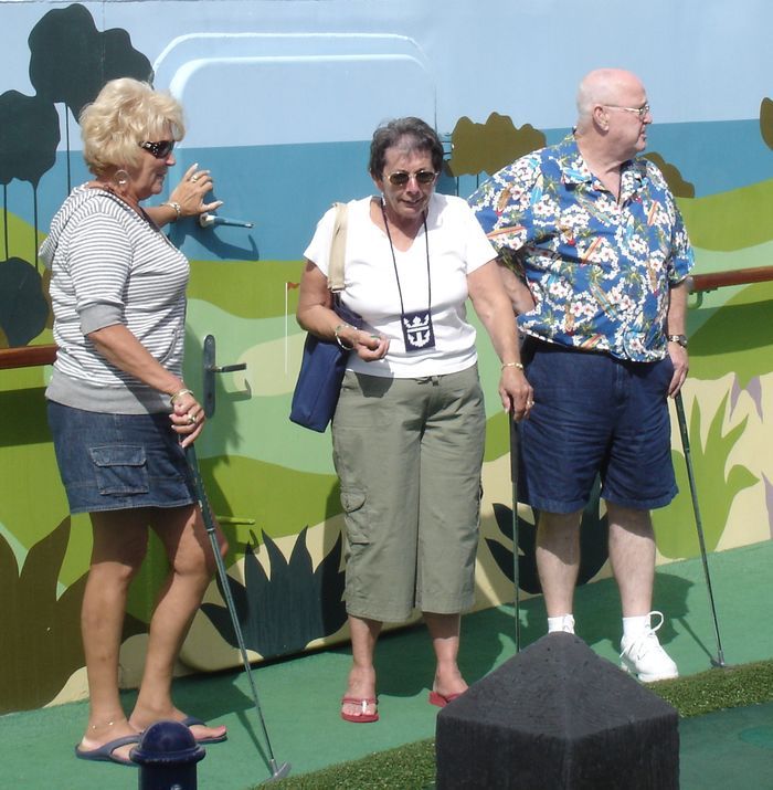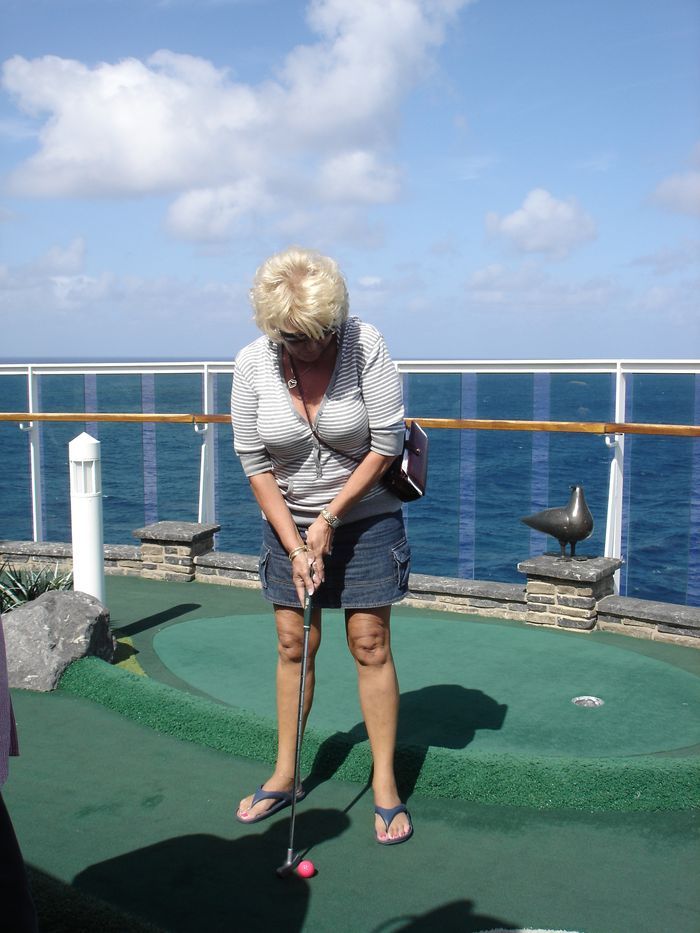 Kathy putts.