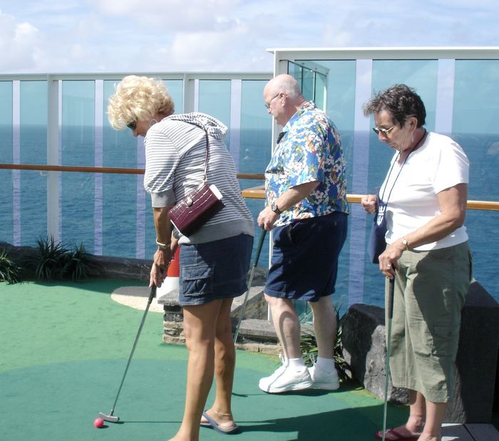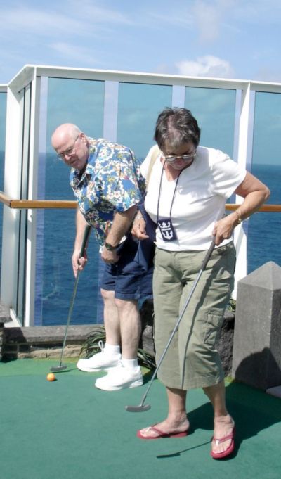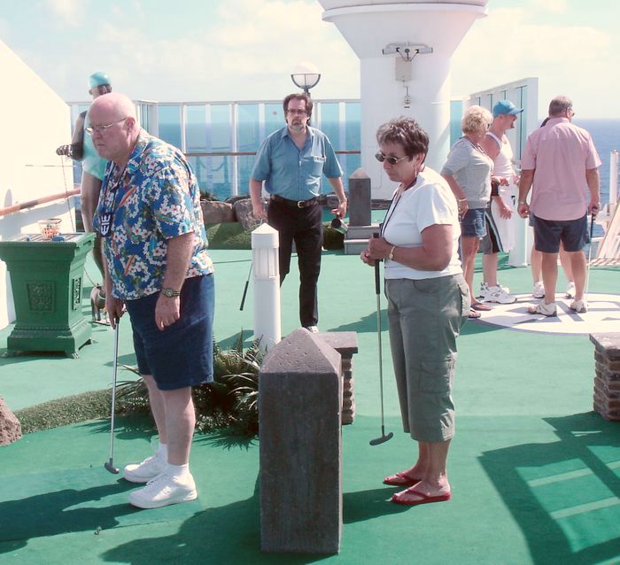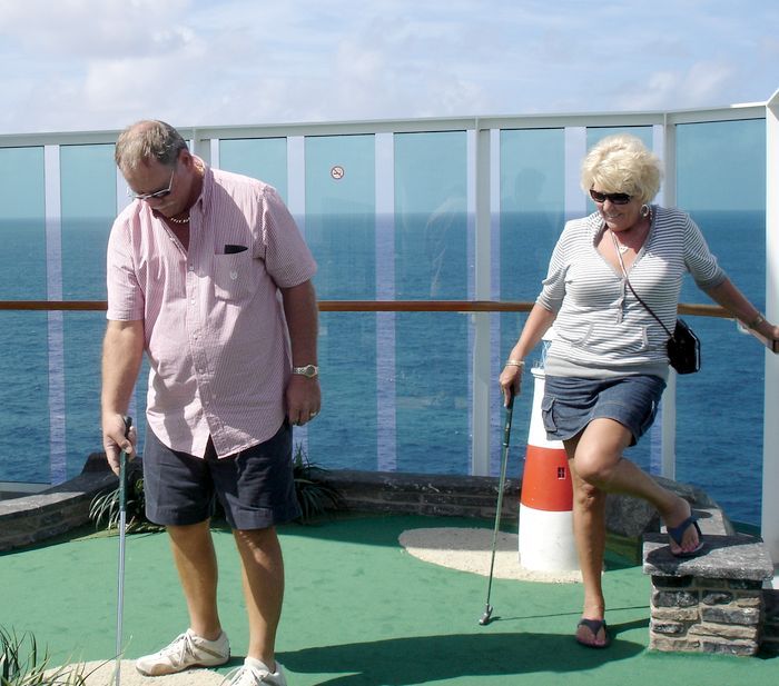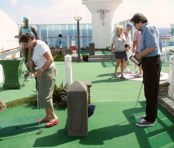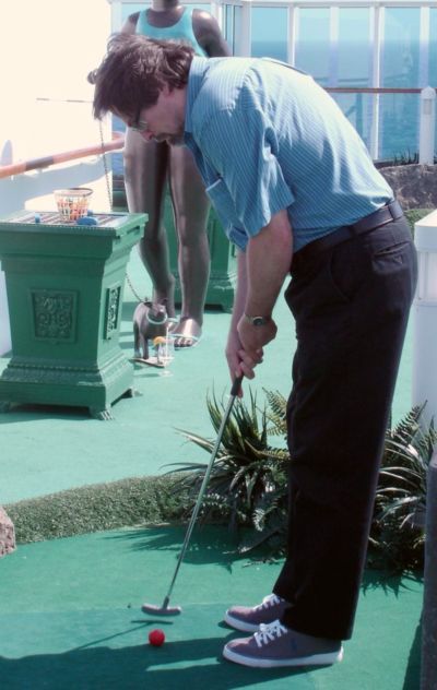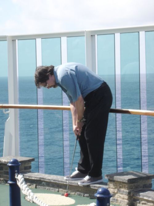 After Mark bought us delicious black-and-white milkshakes art the SeaView cafe, we headed further up to the mini-golf course.