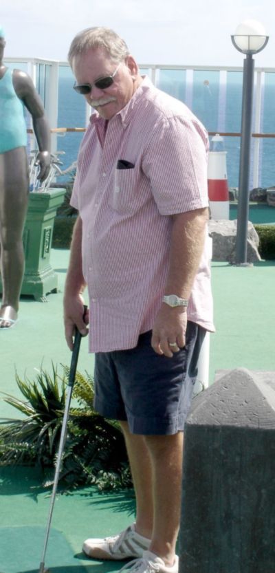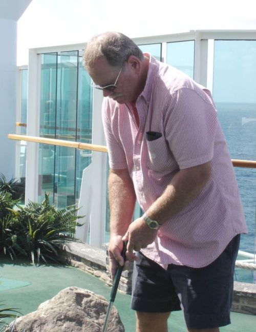Mike watches his putt.