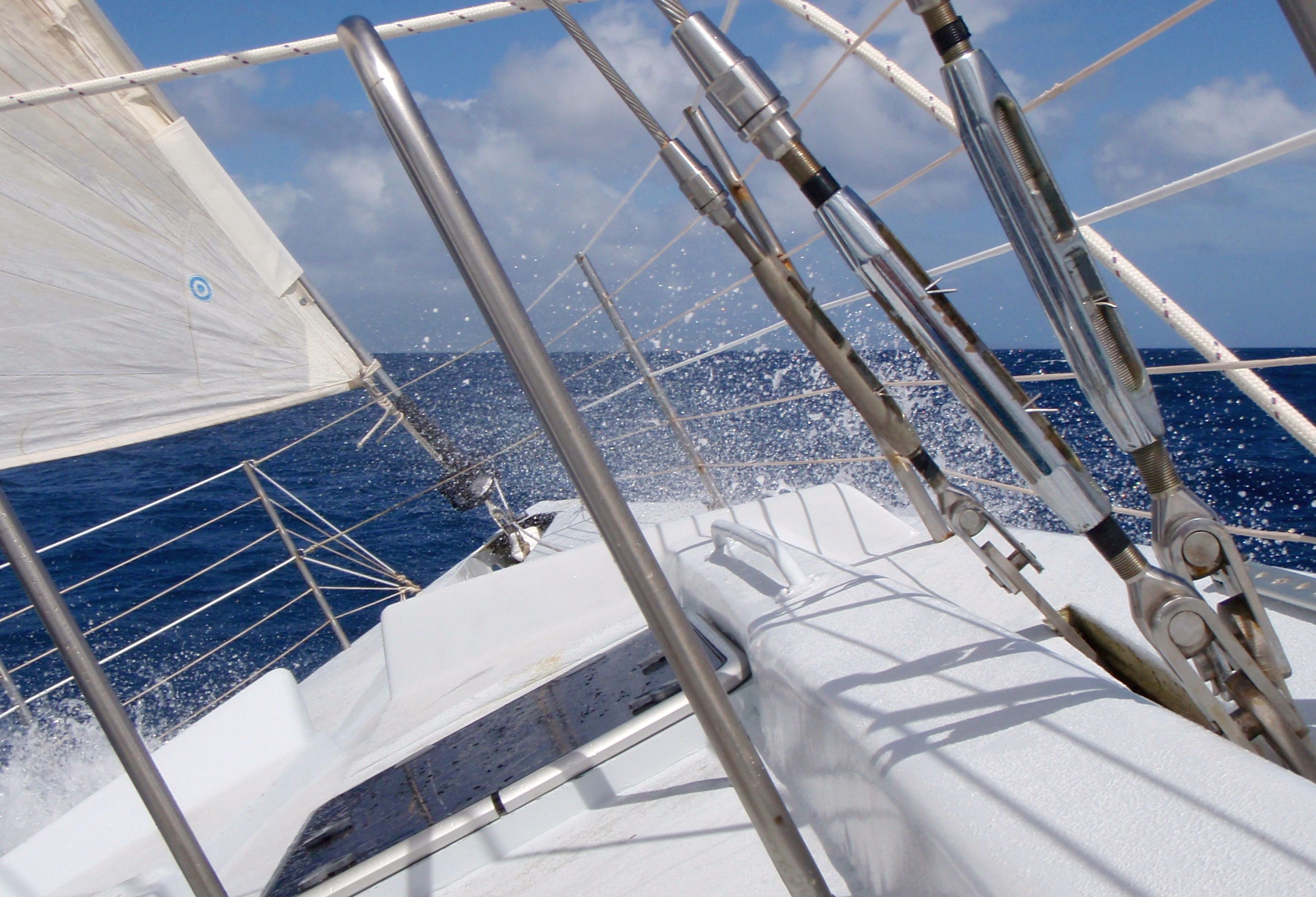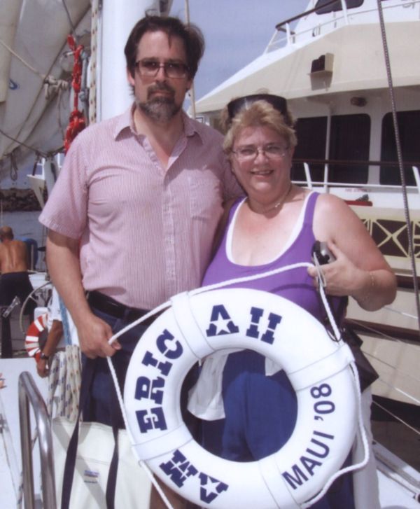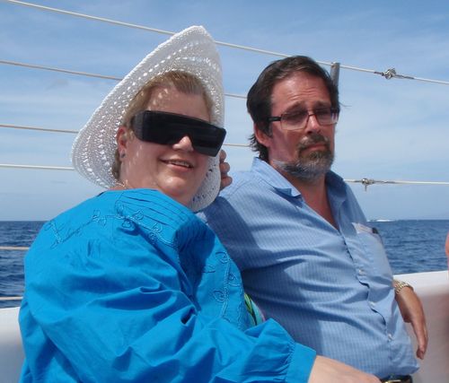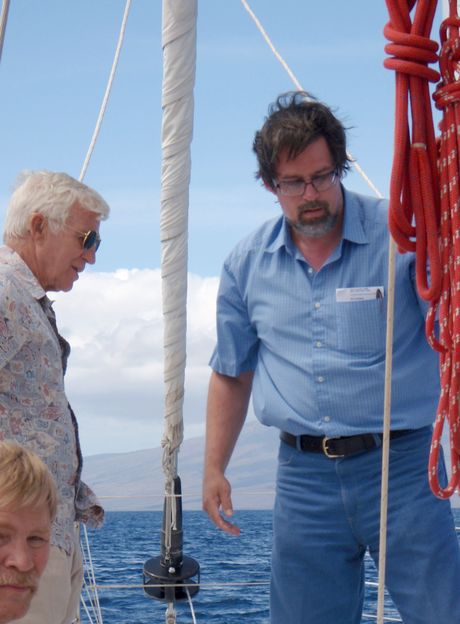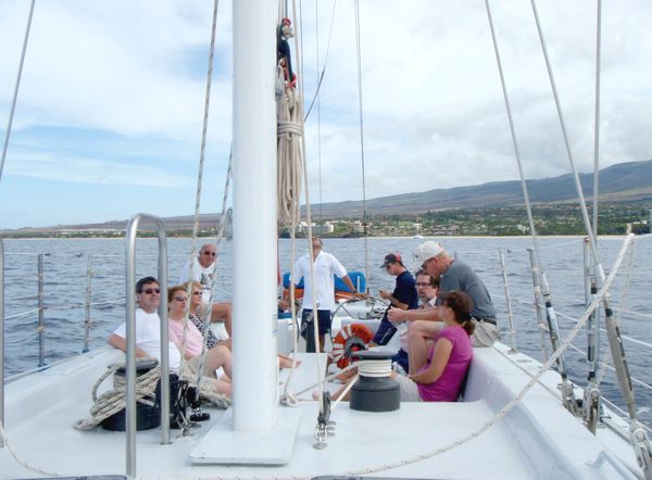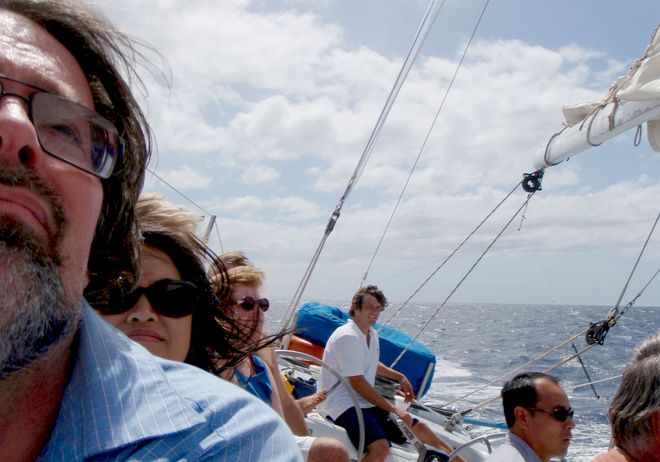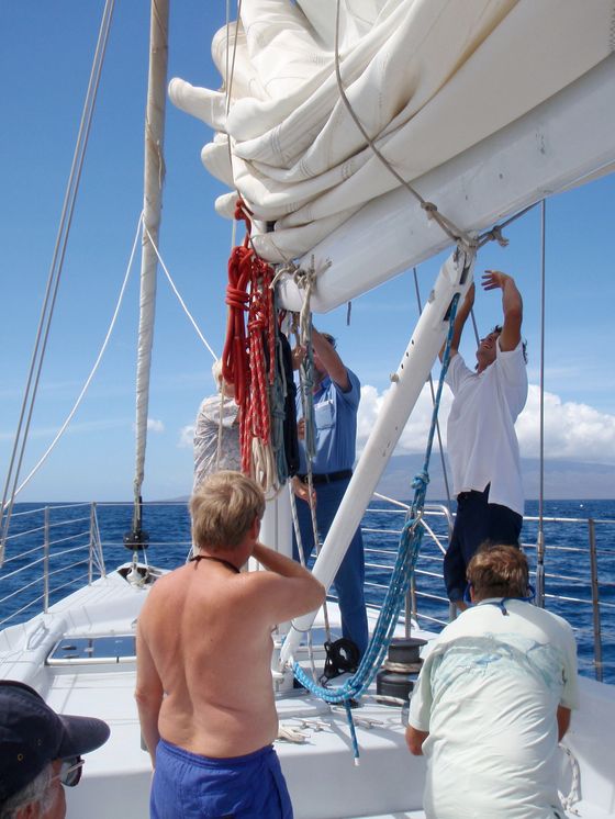 Mike and another passenger help Brett haul up the sail. (Marty said,