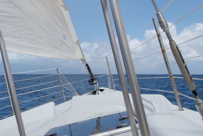 We come about and head home. Notice the Serenade on the horizon in the center.