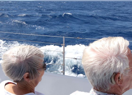 Ginnie and Carl listen to Brett talking about local marine wildlife.