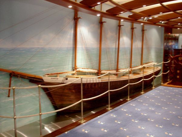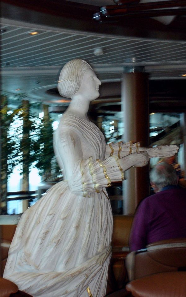 The captain, in his Crown and Anchor Society welcome, says that this statue